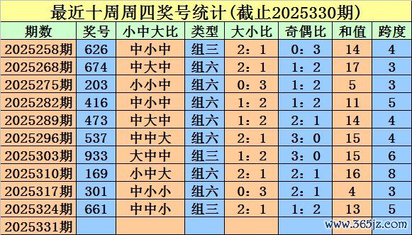 奖号类型判断:近期周四组六显豁活跃,近十周开出7次,面前轮空1周,组三出现较少,本周四看好在组六。